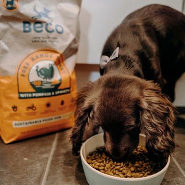 Tail waggingly tasty dog treats, gently baked in small batches in the UK. Plant based protein. Pocket sized and compostable packaging.